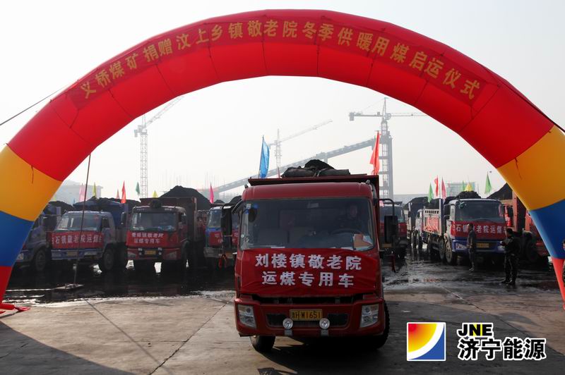 一辆辆满载的煤车缓缓启动,载着义桥煤矿全体干部职工的祝福驶向各乡镇敬老院。