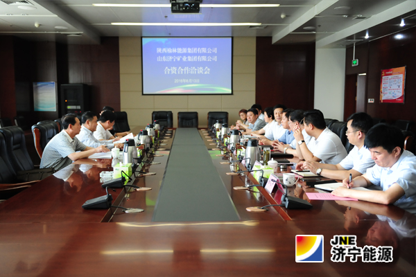 6月13日下午,陕西省榆能集团、山东济矿集团合资合作洽谈会在济宁能源大厦305会议室举行。