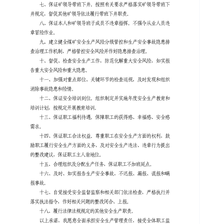 霄云煤矿:矿长安全承诺书