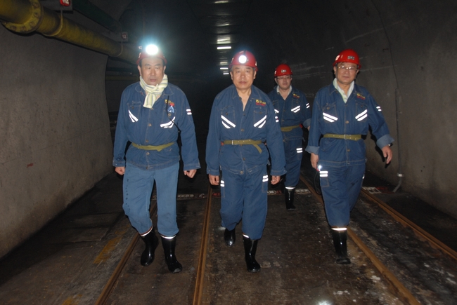 9:10,张总经理深入该矿2306综放工作面生产现场检查,在采煤工作面上端头,与干部职工进行了亲切的交流。对工区自行设计研制的防跑车装置给予了肯定。在2306下顺槽皮带漏煤眼处,现场管理人员向集团公司领导介绍了矿上自行设计、改装使用的煤矸分运装置,该装置对提高采煤效率和提高煤质起到了重要的作用,通过演示使用,张总经理对矿上的小改小革给予了很高的评价。升井后,又与班子成员进行了座谈。