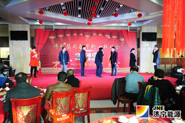 2月16日下午,济矿集团2015年春节职工联欢会在一楼餐厅隆重举行,集团公司干部员工欢聚一堂,喜迎即将到来的新春佳节。济矿集团总经理张广宇在联欢会上致辞。集团公司领导班子成员和集团公司总经理助理分别被安排在17张桌上与各企业负责人、劳动模范、区队长、班组长、员工代表一起观看了演出。