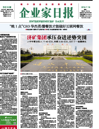 《企业家日报》2016年7月18日头版头条: