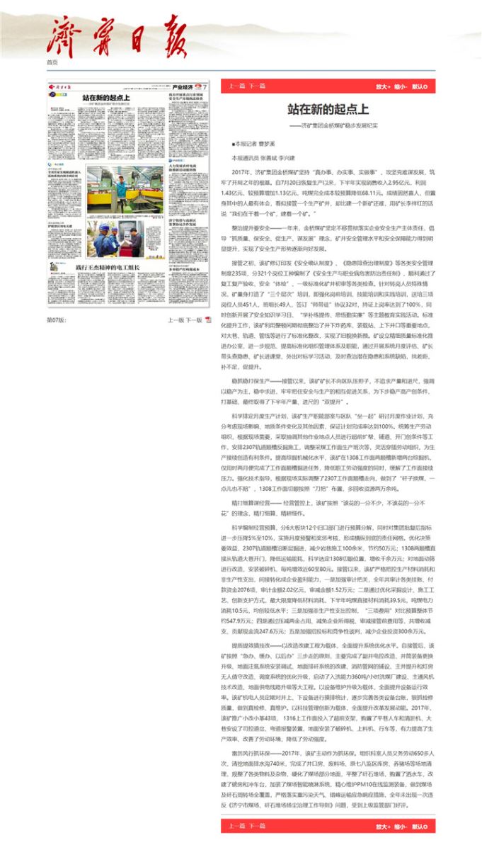 《站在新的起点上——金桥煤矿稳步发展纪实》